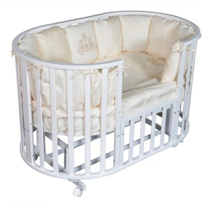 • Овальная кроватка на колесиках (размер спального ложа 125см)