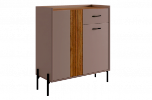 С другой стороны комод оборудован выкатным ящиком, который обеспечивает легкий доступ к часто используемым предметам. Под ним расположен большой глухой фасад, скрывающий за собой просторное хранилище для более крупных вещей.
