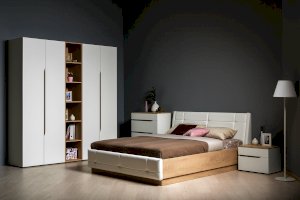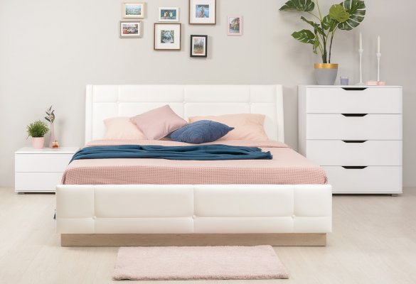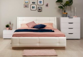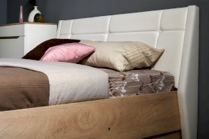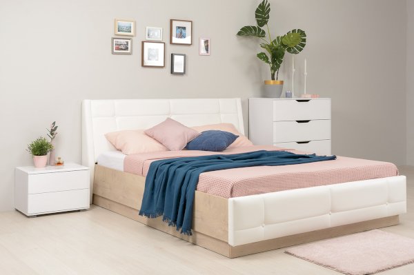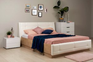- Мягкое изголовье изголовье кровати установлено с небольшим наклоном, что добавляет возможность не только лежать в кровати, но и комфортно сидеть, как на диване